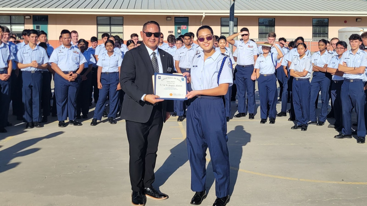 Santa Clarita, CA - The Air Force Junior Reserve Officers' Training Corps (AFJROTC) program at Valencia High School has earned the highest possible rating of “Exceeds Standards” following its Unit Assessment conducted on January 14, 2026. Additionally, Cadet Sophia Nabiev, Valencia High School, and Cadet Weston Michel, Saugus High School, received special recognition as top performers.